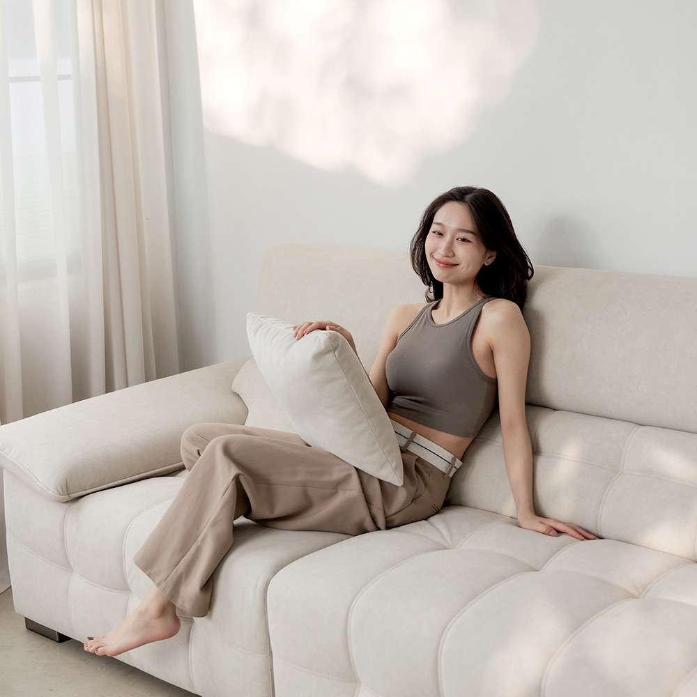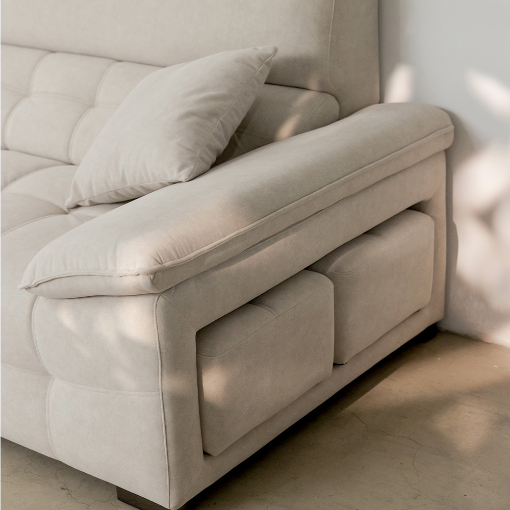 寬大飽滿扶手:視覺柔和、可當靠枕使用,兼顧美觀與支撐。